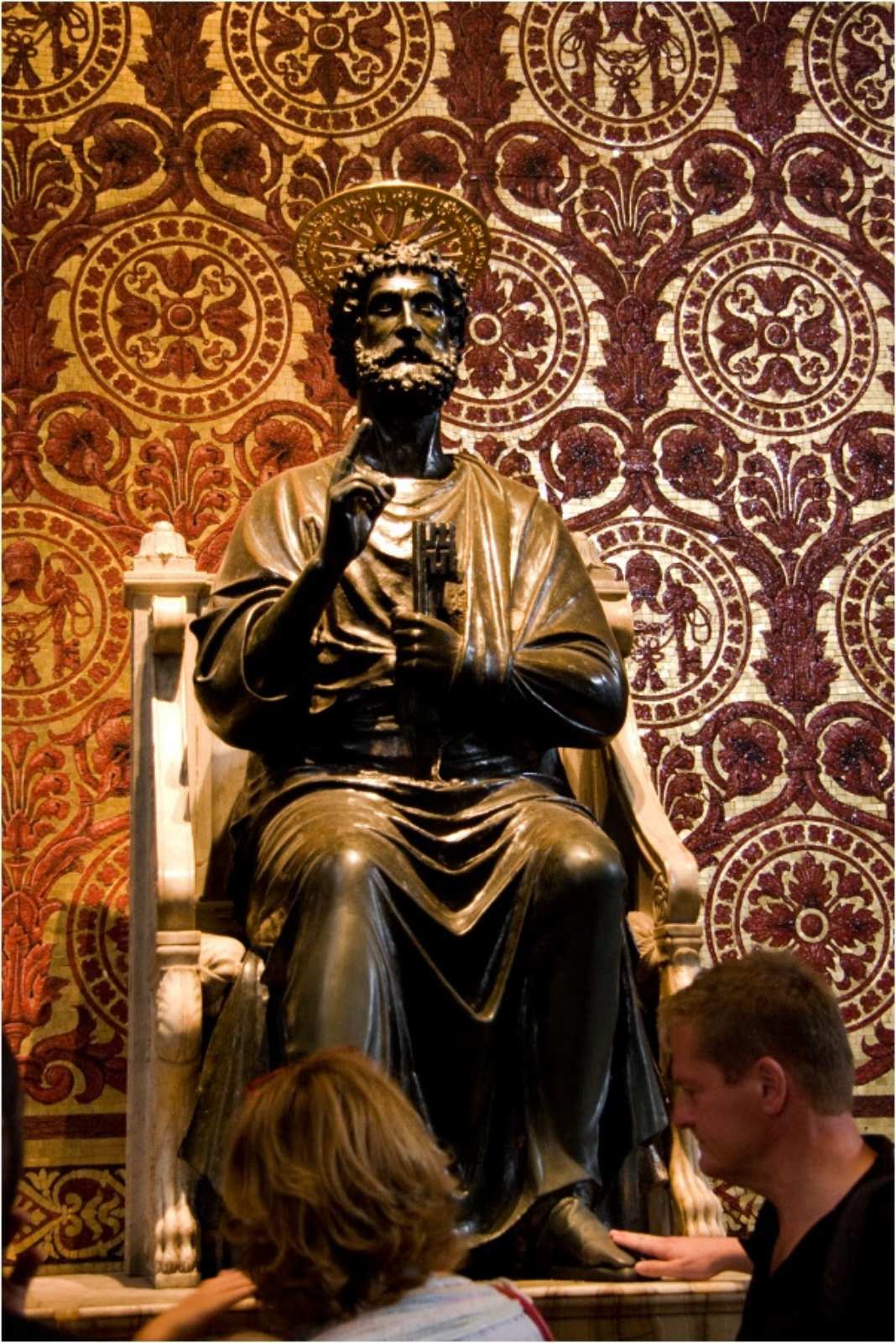 Πάνω απ’ το άγαλμα του Αποστόλου Πέτρου, έχουν τοποθετήσει έναν τροχό.