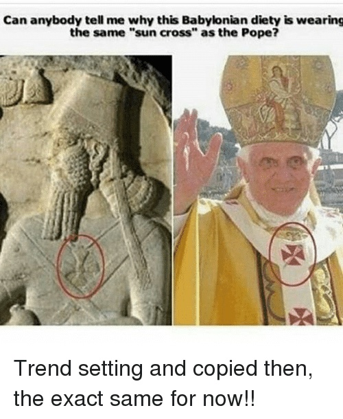 Ο Σταυρός προέρχεται απ’ τοuς ΒΑΒΥΛΩΝΙΟΥΣ της αρχαίας Χαλδαίας και έχει τις ρίζες του στον θεό ΤΑΜΜΟΥΖ των Χαλδαίων, όπου Τ είναι το αρχικό του γράμμα και ήταν ο ΑΝΑΓΕΝΝΗΜΕΝΟΣ ΘΕΟΣ ΗΛΙΟΣ.