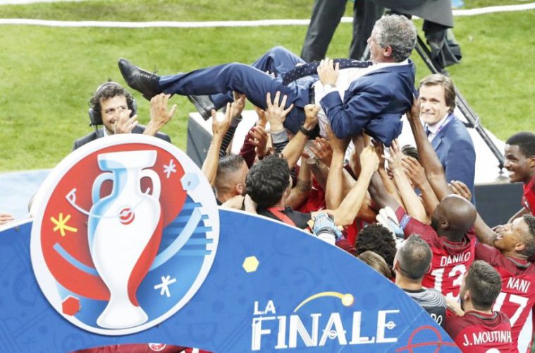 Ενώ ο Σάντος έχει αναλάβει την Εθνική Πορτογαλίας την ανανεώνει ,την σουλουπώνει καί σιγά σιγά την βγάζει Μόστρα στα Ευρωπαϊκά σαλόνια, αλλάζει κατά τό ελάχιστο την τακτική , χωρίς να ξεχνάει να φυλάει πάντα τά νώτα του. Το 2016 κατακτάει το Γιούρο καί αποθεώνεται. Παντού μιλάνε για τόν αναμορφωτή Σάντος καί στην πατρίδα του αποθεώνεται. Δύσκολα κερδίζει , αλλά πολύ ποιο δύσκολα χάνει . Δίνει στην Πορτογαλία ταυτότητα καί την αίγλη πού χρειάζεται. Την κάνει πάλι υπολογίσιμη ποδοσφαιρική δύναμη.