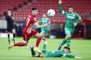 Ο Μπόλονι έστησε την ομάδα λάθος εκ του αποτελέσματος καθώς ο Ολυμπιακός από την αρχή του πήρε το κέντρο,τον πίεζε ψηλά και οι πράσινοι έδειχναν να τα έχουν χαμένα.