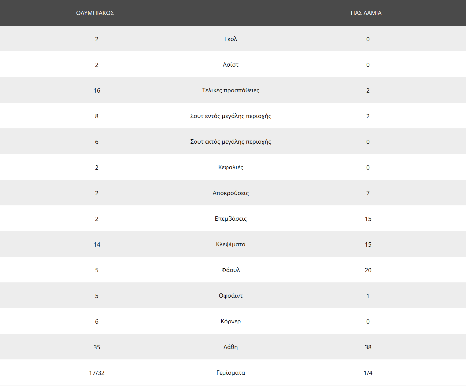 Ήξεραν από την αρχή προπονητής καί παίκτες τής Λαμίας ότι εάν μπορούσαν νά βάλουν δύσκολα ή καί νά πάρουν κάτι από το σημερινό παιχνίδι με τον Ολυμπιακό έπρεπε νά παίξουν με αυτήν την τακτική καί διάταξη. Το πέτυχαν απόλυτα για ένα ημίχρονο όπου ο Ολυμπιακός δεν έβρισκε τούς χώρους νά δημιουργήσει θέματα στον πολύ καλό γκολκίπερ χθές Βελιδη.