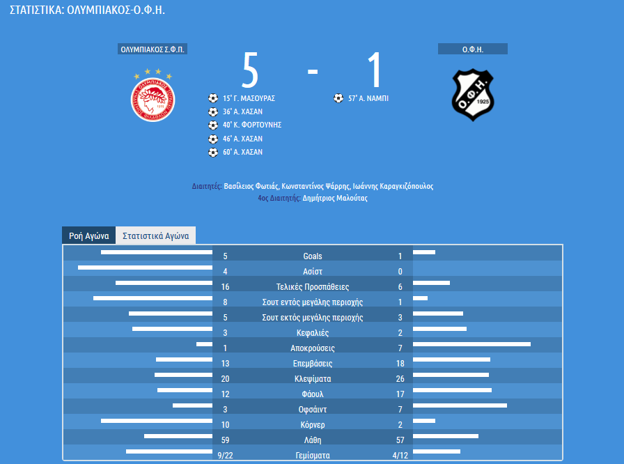 Μεγάλο ζητούμενο ήταν για τον κόσμο τού Ολυμπιακού για τό πώς θά παρουσιαστεί η ομάδα σήμερα με αντίπαλο τον ΟΦΗ. Δεν είναι λίγο πράγμα μετά από Ευρωπαϊκό αποκλεισμό καί έτσι όπως ήρθε αυτός, να μπεις για ματς μέσα σε 3 μέρες. Η ψυχολογία τών παικτών τού θρύλου δεν πρέπει να ήταν καί στο καλύτερο σημείο καί λογικό ήταν. ‘Ομως εάν εξαιρέσουμε τά πρώτα 15-20, πού ο Ολυμπιακός μπήκε μουδιασμένος, έκανε αναγκαστικές δύο αλλαγές, όλο τό υπόλοιπο ματς ήταν πραγματικά καταιγιστικός. Κέρασε με ένα πεντάμπαλο την ομάδα τής Κρήτης, παίζοντας όμορφο ποδόσφαιρο.