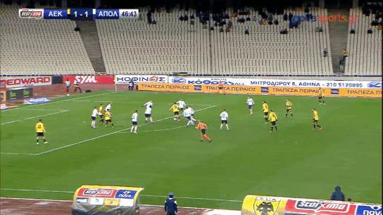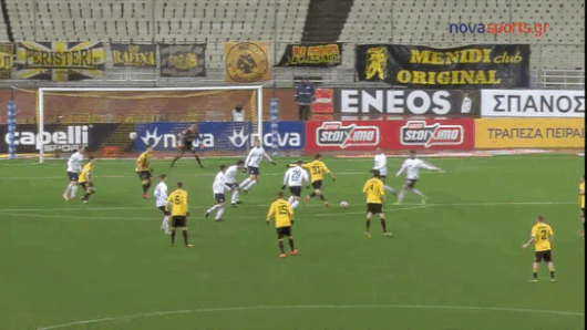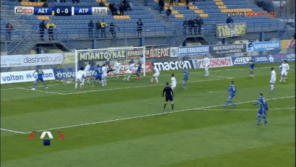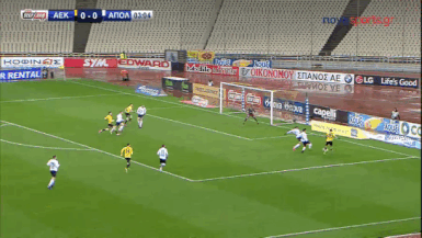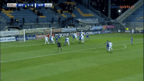 Νόστιμη εκτέλεση κόρνερ διώξιμο πάσα ο Μεγερι, τη βρίσκει ο Καλτσάς και η μπάλα στ μπακλαβωτό. !!